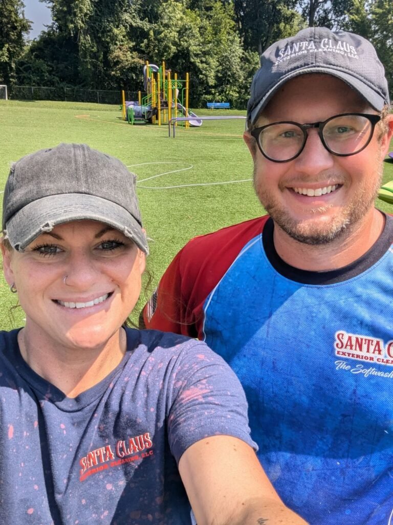 Meet Burgess and Courtney Heberer, the heart and soul behind Santa Claus Exterior Cleaning. Nestled in Santa Claus, IN, the couple, along with their daughter Eleanor, call this charming town home. The journey began when Burgess and Courtney decided to replace their old, mossy, and weathered roof. In an effort to maintain the pristine condition of their new roof, Burgess came to realize there was a gap in local exterior cleaning services. This revelation sparked the idea to establish a company that not only elevates property aesthetics but also contributes meaningfully to the community. From day one, Santa Claus Exterior Cleaning has been more than just a business—it’s a commitment to community well-being. Motivated by a passion for helping children, the Heberers dedicated 10% of the company’s profits to supporting local children in need. The impact has been felt in various ways, from cleaning elementary and preschool playgrounds annually to donating essential winter items and establishing a scholarship for local high school seniors pursuing higher education or personal development plans. Before venturing into the world of exterior cleaning, Burgess was a research and development scientist specializing in infant formula and children’s nutritional drinks. Courtney, on the other hand, remains a middle school music and choir teacher, infusing creativity and inspiration into the lives of her students. She plays an integral role in the company’s quoting, scheduling, and other administrative duties. Recognized for their entrepreneurial spirit and community-focused initiatives, Santa Claus Exterior Cleaning has proudly earned the distinction of being a home service top grant recipient in the “New Entrepreneurs” category, standing out among thousands of applicants across the United States and Canada. In 2024, fueled by a desire to make an even greater impact, the Heberers expanded their offerings by introducing a new division dedicated to decorative concrete coating services. As the business continues to grow, so does their commitment to creating a positive and lasting difference in the lives of local children. At Santa Claus Exterior Cleaning, our story is woven with passion, dedication, and a genuine love for our community. Join us in our mission to not only enhance the beauty of your property but also contribute to the well-being of the next generation.