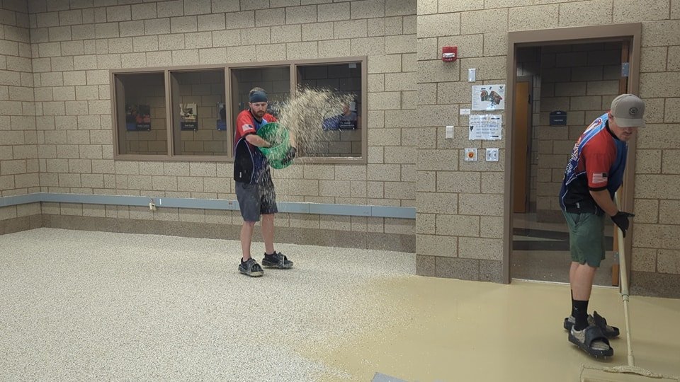 “Step 3 of Santa Claus Exterior Cleaning’s Concrete Coating Service: The Basecoat”